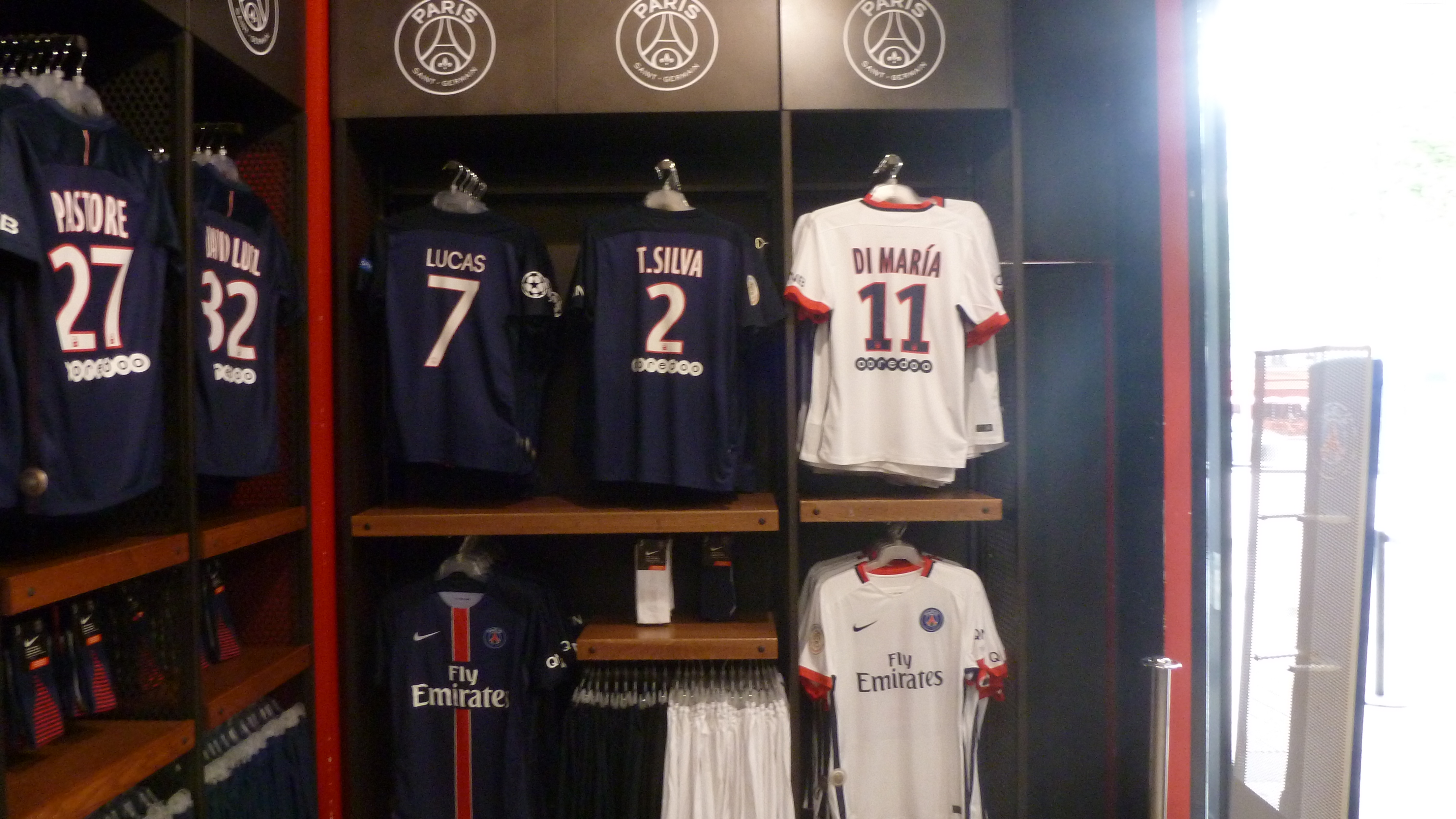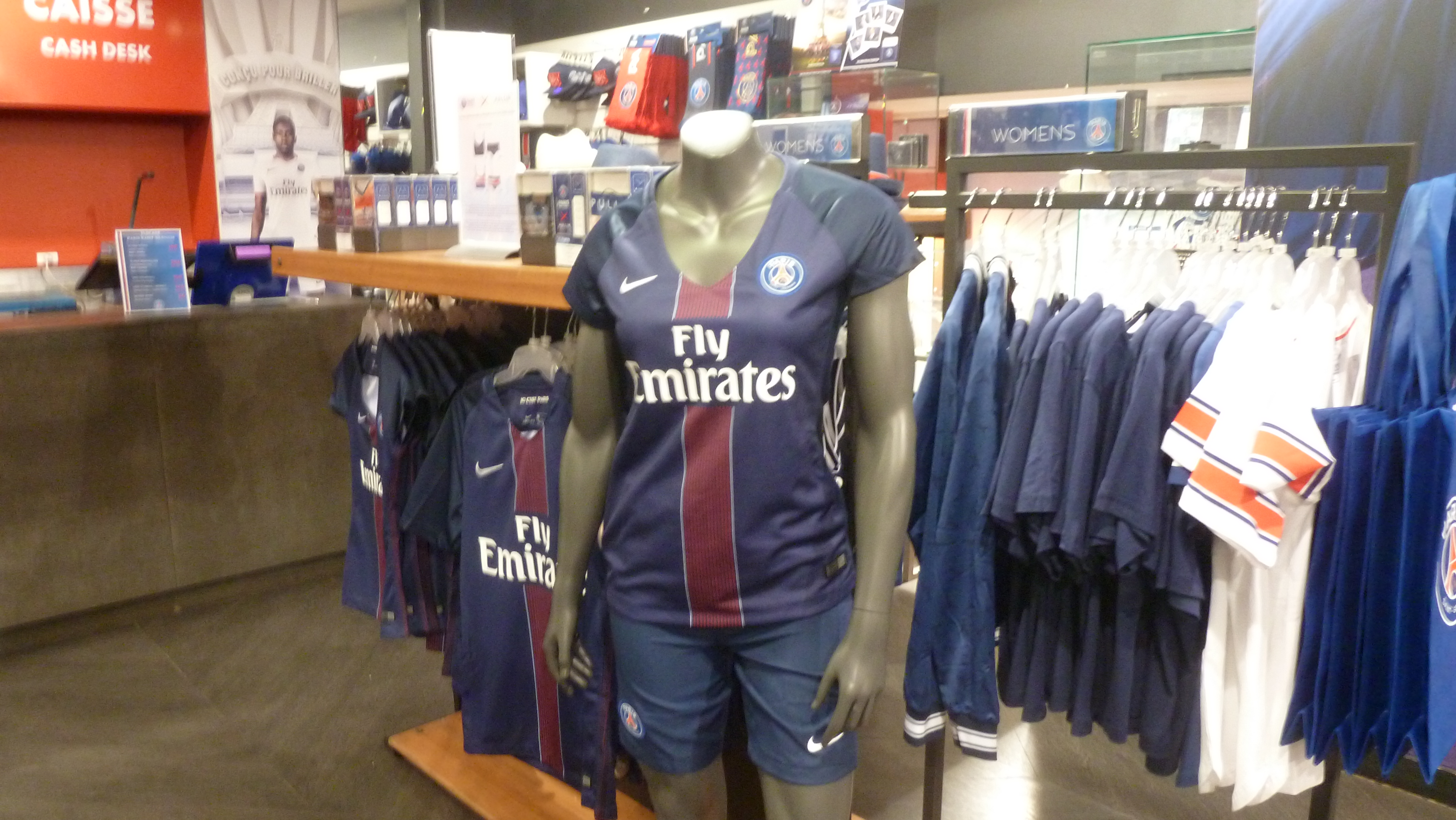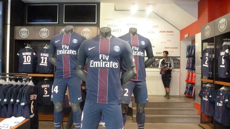 ユニフォームはホーム、アウェイ、サードが揃っており、女性用や子供用も備えているため、種類は非常に豊富である。2階にあがるとブレーズ・マテュイディが、実際に着用したシャツとスパイクが装身具のように飾られていた。その様は、パリの心臓が如何に特別な存在であるかを証明するかのようだった。