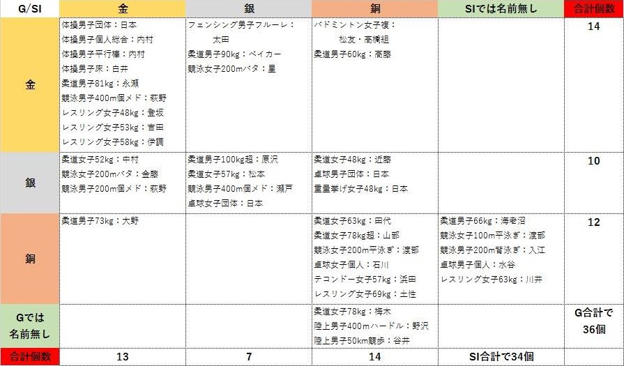 <表4>グレースノート(G、行)とスポーツイラストレイテッド(SI、列)の日本選手メダル予想
