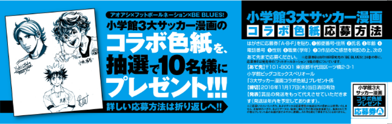 【あて先】〒101-8001 東京都千代田区一ツ橋2-3-1 小学館ビッグコミックスペリオール「3大サッカー漫画コラボ色紙」プレゼント係