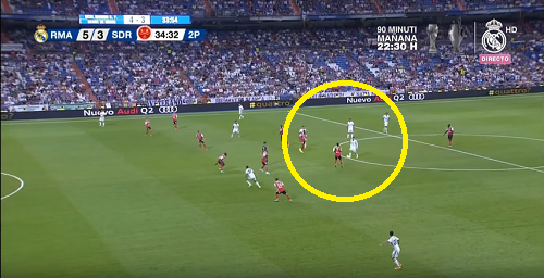 79分、エンツォ・ジダンからパスを受けたコヴァチッチはピッチ中央でルックアップ。