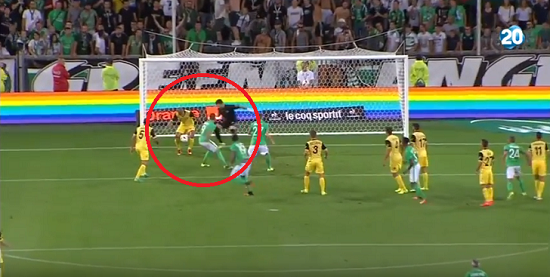 コーナーキックからサンテティエンヌに決定的なチャンスを許すのだが、MFクラウデミールがこれをクリア!