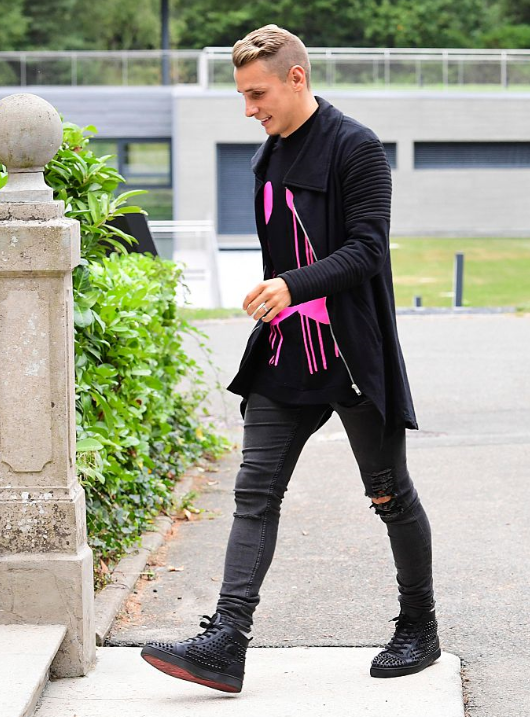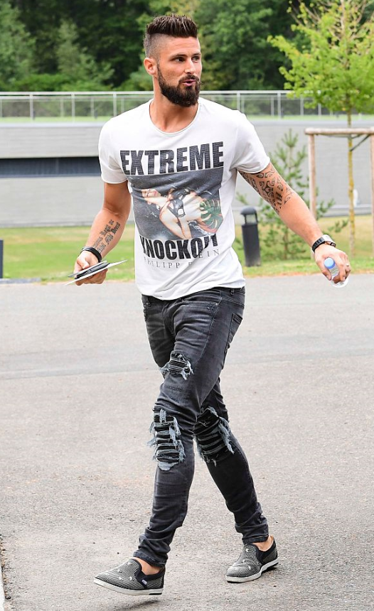 FWオリヴィエ・ジルー(アーセナル)。Tシャツは『philipp plein』。足元は『Jimmy Choo』Grooveのスリッポンだと思われる。