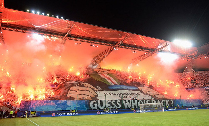 アウェイで0-6と大勝し好スタートを切ったのだが、そのキックオフ前、レギア・ワルシャワのサポーターからとんでない洗礼が待っていた!