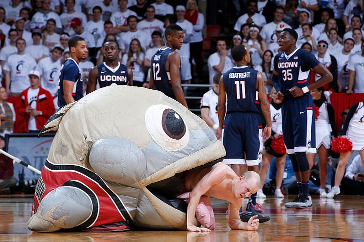 もちろん演出なのだろうが、逆さまに人が咥えられる様、あるいは裸になって口から出てくるあたりのリアルさは恐怖すら感じられる。試合前のアトラクションであったというが…日本ではまずありえないような生々しいパフォーマンスだ。