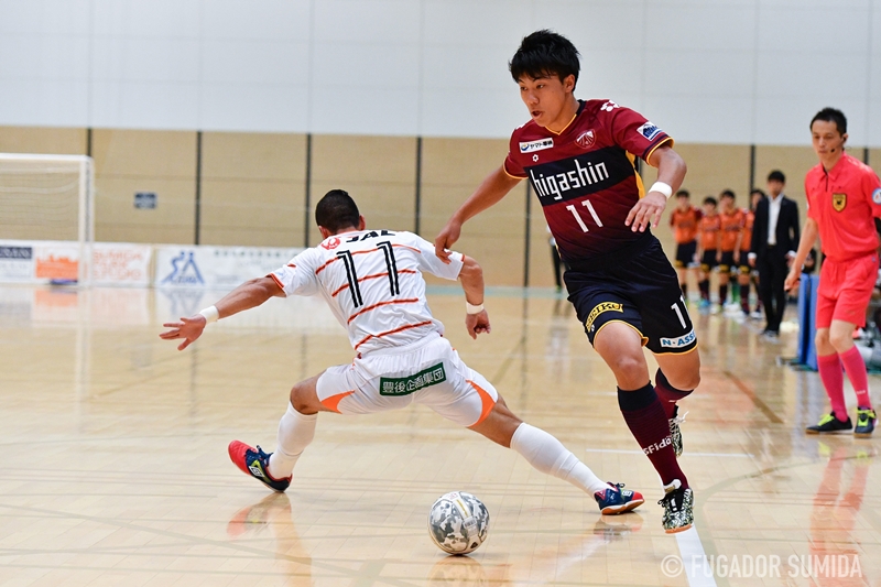高校3年生だった17歳のときにFリーガーとなった清水。その年に4冠を飾った名古屋オーシャンズを相手にハットトリックを決めるなどセンセーショナルなデビューを飾り、翌年にはフットサル日本代表にも選出。3シーズン目となる今シーズンは、13節を終え11試合9得点。10勝2分1敗で首位を走るチームを牽引する一人だ。
