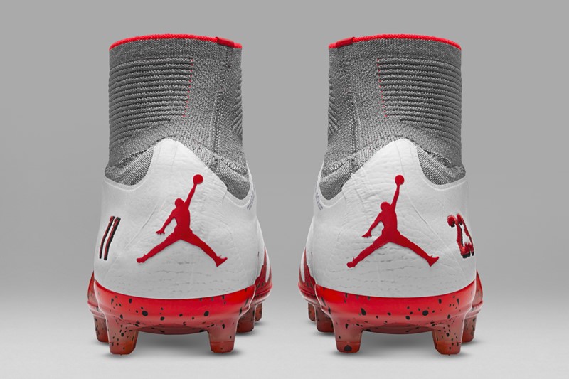 アウトソール、そして両足のかかとには引き続き「ジャンプマン」のロゴ。また左右の足には、ネイマールのバルセロナでの背番号11、そしてマイケル・ジョーダンへの敬意を表する23の番号がそれぞれ入れられている。