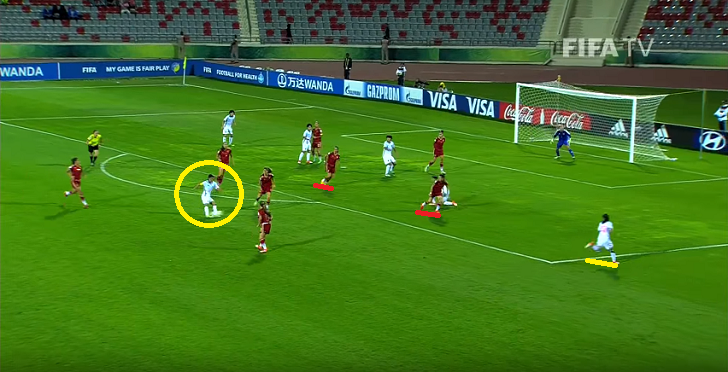この素晴らしいパスによってスペインの守備組織を崩した日本はここから冨田がクロスを入れ、これがスペインの選手に当たってオウンゴールとなった。