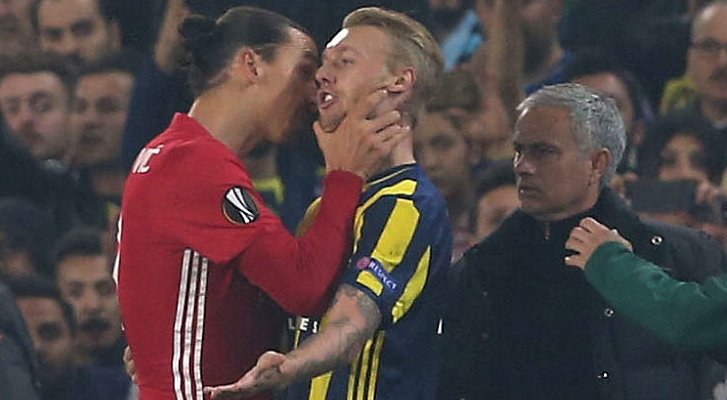 ズラタン・イブラヒモヴィッチが、相手DFシモン・ケアの首を掴む!