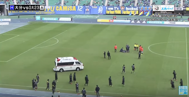 レフェリーはすぐさまメディカルスタッフをピッチに入れ、最終的には救急車が出動する事態となった。