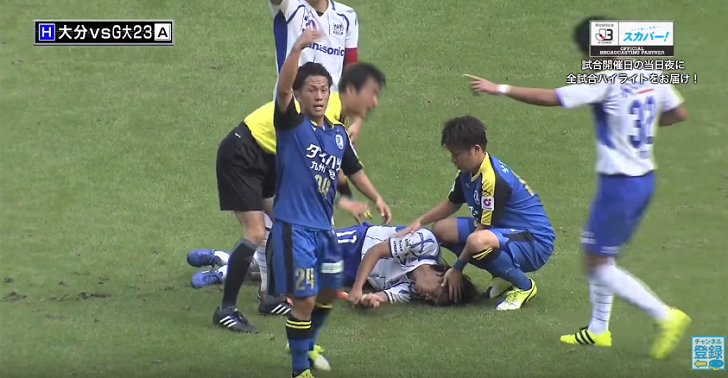 先週末、大分銀行ドームで行われた第28節の大分トリニータ対ガンバ大阪U-23の試合では、ショッキングなシーンがあった。