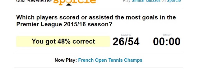 15日、『FourFourTwo』は「2015-16シーズンにゴールとアシストを合わせて9回以上記録した選手、全員の名前を挙げられる?」というクイズを掲載した。