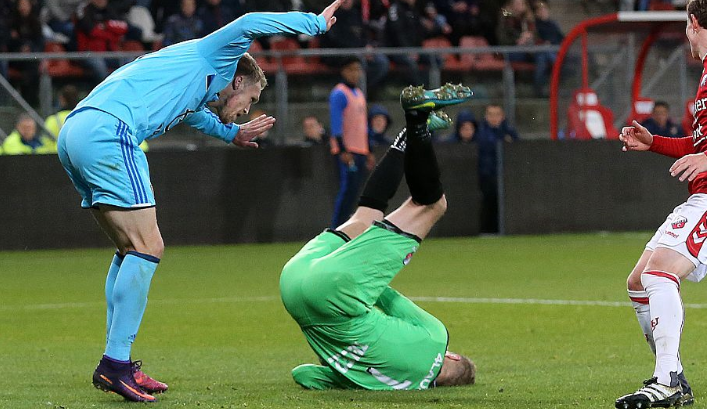試合後半、ユトレヒトGKロビン・ライテルが相手FWニコライ・ヨルゲンセンと接触し、落下した際に頭をひどく打ちつけてしまった。