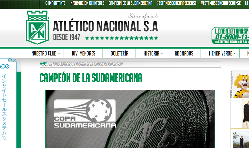 29日、コパ・スダメリカーナ決勝でシャペコエンセと戦う予定だったアトレティコ・ナシオナルはチームの敗退を望むことを公式ホームページで明らかにした。