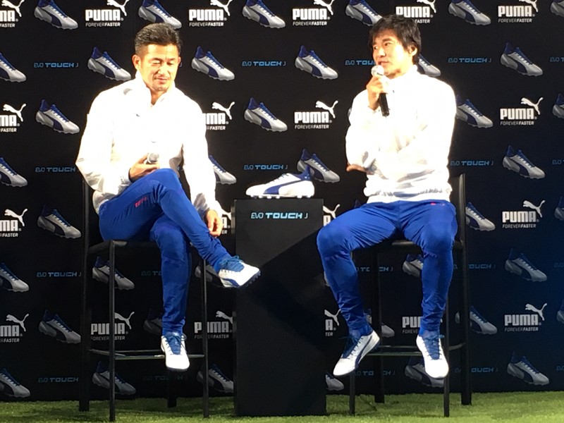 また、発表イベントには「カズ」こと三浦知良と中山雅史が登場。スパイクを中心としたトークを繰り広げた。