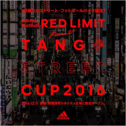 新宿へ集まれ!明日12月11日、新宿で1日限定のストリート・フットボールパーク “adidas football RED LIMIT Presents TANGO STREET CUP 2016” を開催。https://t.co/WkQp20TThb#NeverFollow pic.twitter.com/jo9DWUv4e7