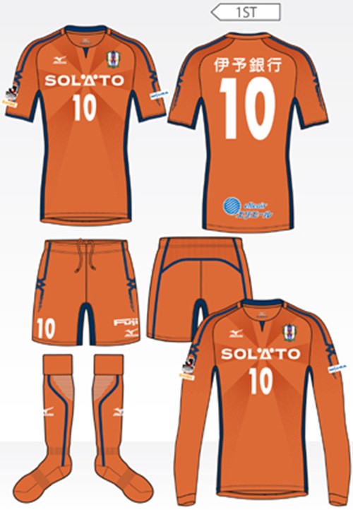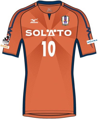 旧伊予国である愛媛の特産物が、弾ける「フレッシュさ」や「楽しさ」を想像させ、選手やスタッフ、サポーターという一つ一つの粒がまとまっている一体感をも表現したデザインだ。差し色の紺は、静かで落ち着きを感じさせる瀬戸内海をイメージしたカラー。
