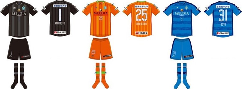 GKユニフォームはカラーを一新し、黒のホーム、オレンジのアウェイ、青のサードというラインナップに。ホームとアウェイはFP用ホームと同じストライプ柄、サードはFP用アウェイと同じボーダー柄となっている。