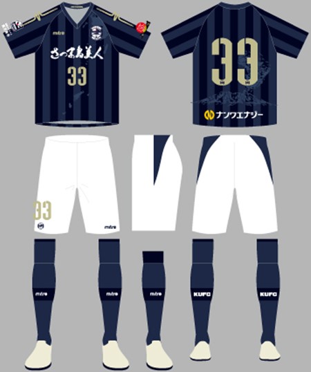 ホーム(1st)は、J参入に当たって採用した紺を基調に、濃淡のストライプ柄というデザイン。また、リーグ優勝するという強い覚悟と勝利を信じて戦い抜く意思を背番号のゴールドで表現した。
