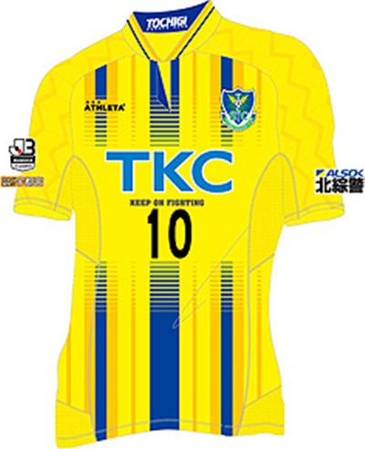 ホーム(1st)は黄色を基調に、栃木県に流れる3本の河川(鬼怒川、那珂川、渡良瀬川)を青のストライプで表現。両肩から袖にかけては「雷都」の雷をイメージしたジグザグの模様が入れられている。