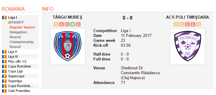 なお、公式webサイトでもポリ・ティミショアラ戦を「何も、何もありません」とレポートしている。ライセンス要件を遵守しなかったためトゥルグ・ムレシュは9、ポリ・ティミショアラは14の勝ち点減からのスタートとなっており共に勝ち点10で最下位を争っていた。