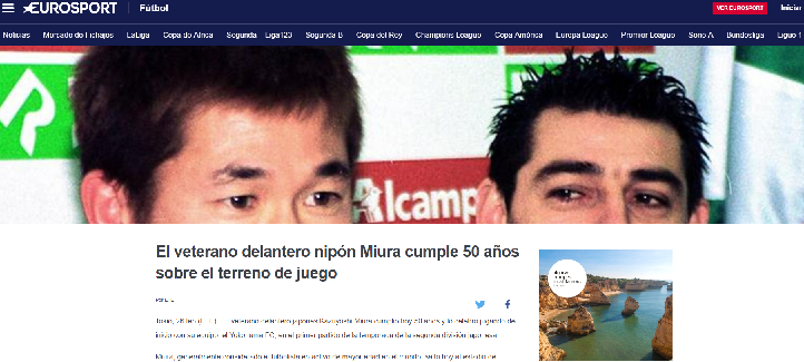日本のベテランストライカーであるミウラがピッチ上で50歳を迎えた、として開幕戦に出場し、チームも勝利したことを伝えていた。