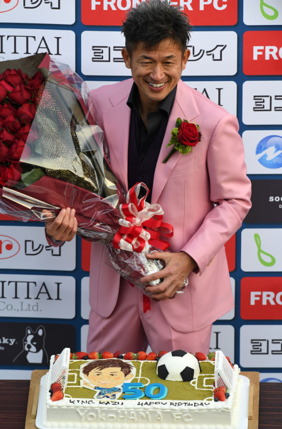 試合後、カズには誕生日を祝うケーキや花束が贈られたようだ。