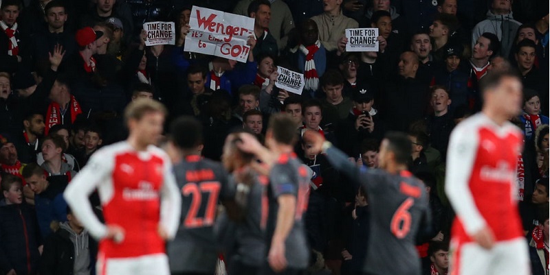 終盤にはヴェンゲルの退任を求めるファンの姿がカメラに映され、敗退が濃厚な状況ながらファンから歓声があがるなどヴェンゲル監督としてはある種屈辱的な試合となった。