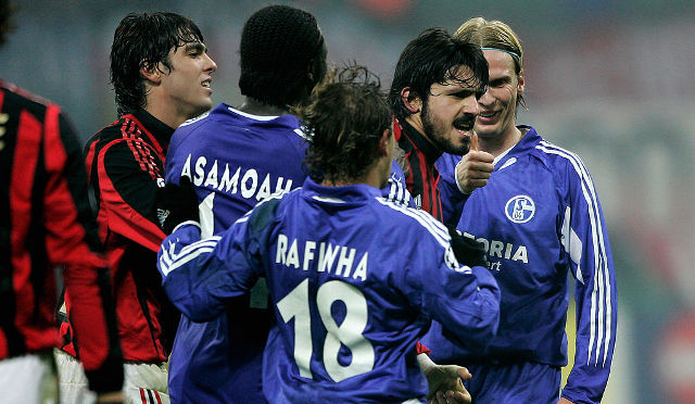 「そりゃクリスティアン・ポウルセンだ(2005年のシャルケ戦では、ポウルセンの徹底マークに苦しんだカカが挑発に乗って退場し、ガットゥーゾは記者会見でその行為に対して批判した)。