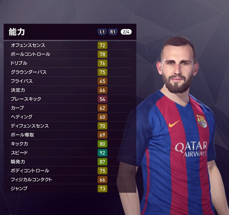 まだ23歳でラキティッチと比べて発展途上という感じだが、上回っている能力の一つがドリブル。身長188cmらしい懐の深いドリブルでボールを触りながら、左右の足で正確なパスを送るMFだ。