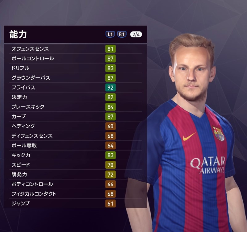 続いて中盤。今シーズン出場機会が減っているイヴァン・ラキティッチだ。