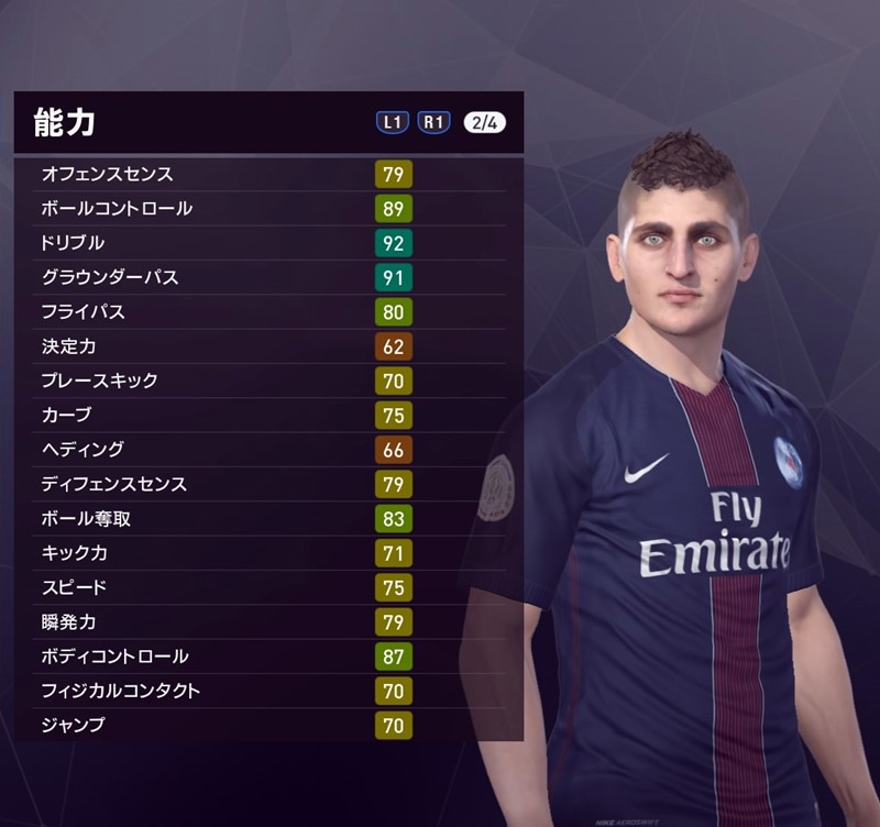 瞬発力はどちらも92!スピードに乗りながら仕掛けていく様は相手選手にとって脅威だ。