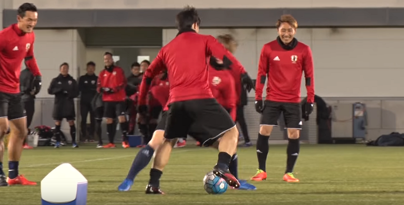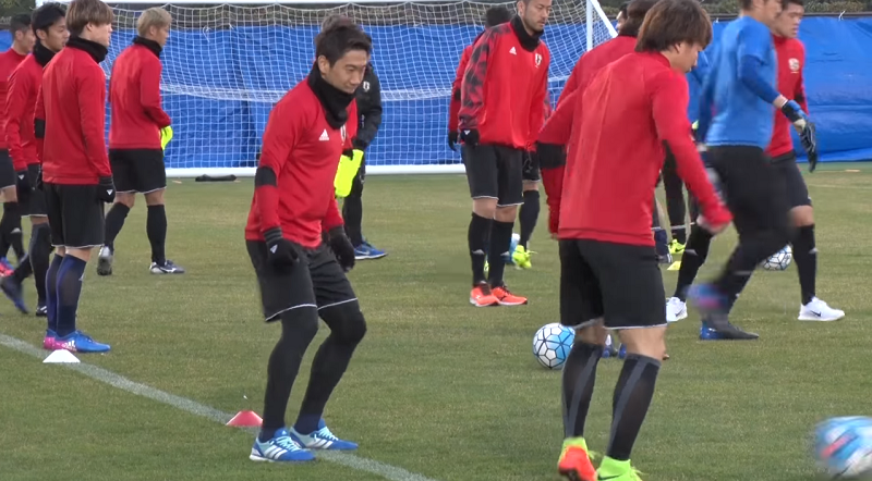 UAE戦に勝利したということもあってか全体として雰囲気が良く、ミランで出場機会を失っている本田圭佑にも明るい表情が見られた。