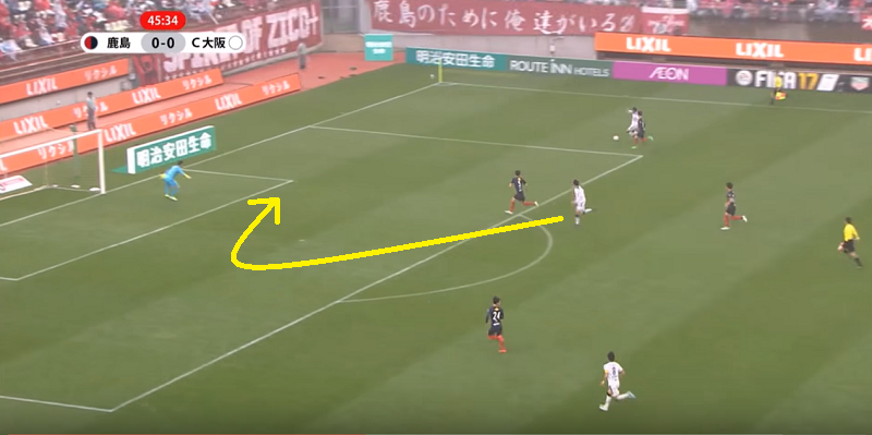 植田としては関口に対応していた山本脩斗のカバーを考慮する必要があったため100%山村の動きをチェックすることはできなかったかもしれないが、それでもこれだけ味のある動きをされては成す術がなかったはず(2人を見れる走り方で戻れればベターであった)。