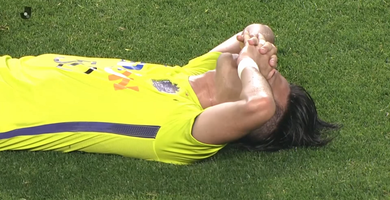 ガッツポーズを見せるわけでなく、チームメイトと喜びを共有するわけでもなく、センターサークルに倒れ込み両手で顔を覆っていたのだ。