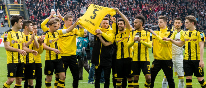 そして、ドルトムントはこの日、ジグナル・イドゥナ・パルクでフランクフルトと対戦。8万人のサポーターの前で3-1で勝利した一戦では、選手たちがバルトラのユニフォームを掲げるシーンもあった。