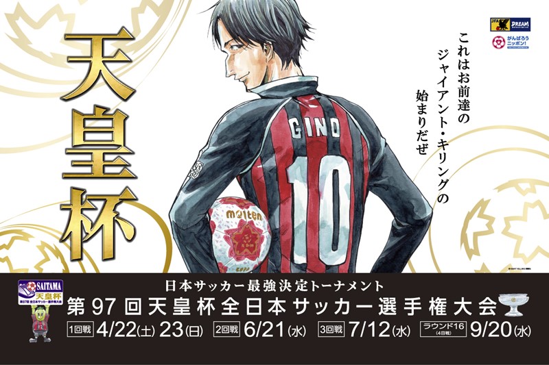 今年もメインビジュアルで『GIANT KILLING』のジーノ選手を使い、特別協賛のスルガ銀行が「SURUGA I DREAM Award」を出すのなら、その可能性を広げる方向でのセッティングをお願いしたいです。代表選手も登場できる日程にしたいのなら、ベスト16が出そろった後の8月7日に組み合わせ抽選をするラウンド16(4回戦)以降でも良いのではないでしょうか。