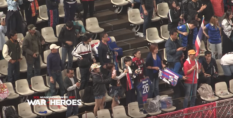 ムアントンが配信している映像を見てみると、ゴール最前列に甲府のユニフォームを持ったファンが確認できる。