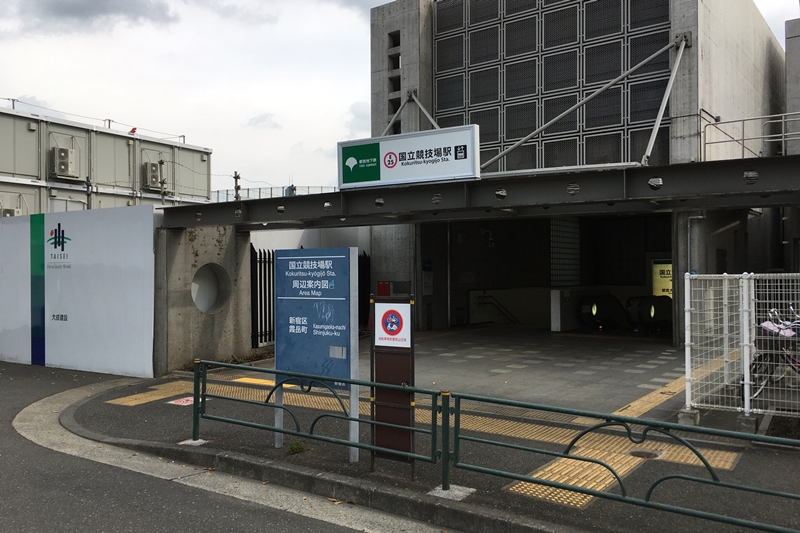 大江戸線の国立競技場駅。国立の解体工事が始まった2014年以降、1日の平均乗降客数は1000人ほど減っている。