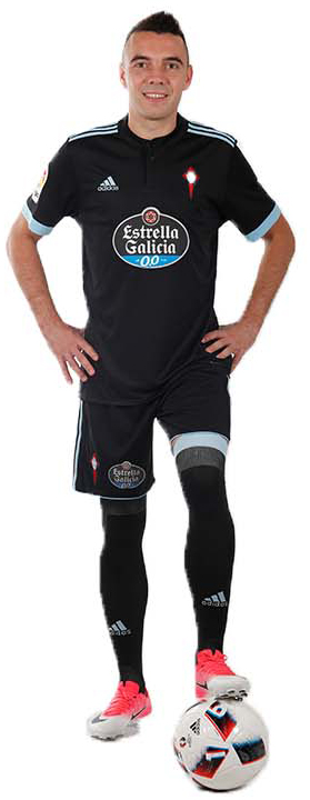 アウェイキットは黒色を基調にホームカラーの水色をスリーライン、メーカーロゴ、袖口に配色。首周りはスタンドカラー(立ち襟)だ。黒色の生地に映えるエンブレムの独特な十字架デザインは、国家防衛のため12世紀にイベリア半島でイスラム勢力と戦ったサンティアゴ騎士団のシンボル。