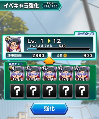そして、上限開放。すべてのイベキャラは同じキャラどうしで強化することで、レベルの上限が開放できます。強化するときにイベキャラの上に成功確率が表示されるのでチェックしてみましょう。