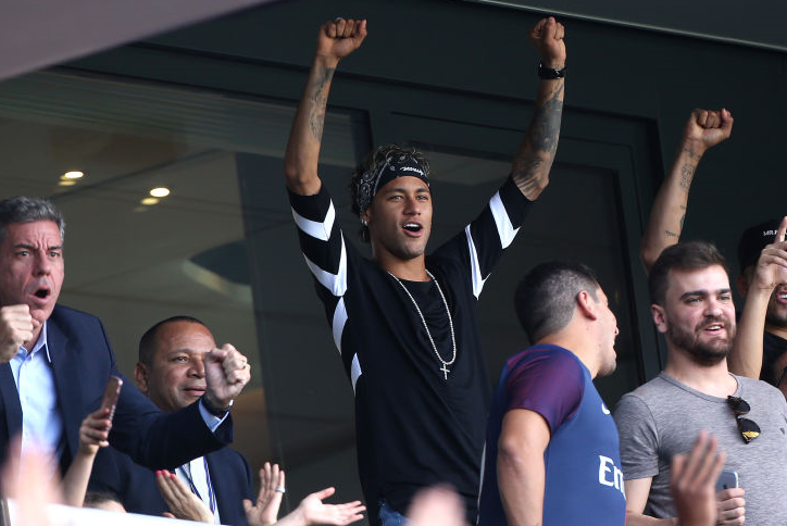 バルセロナからPSGへ電撃移籍したネイマール。パルク・デ・プランスで行われたアミアンとの開幕戦でお披露目が行われた。