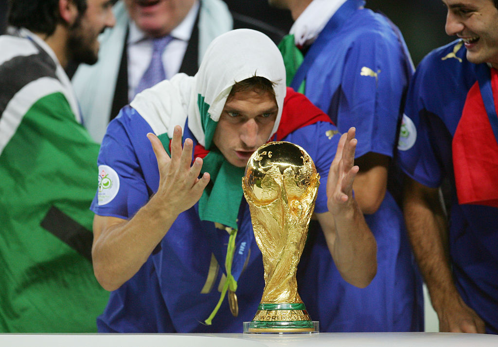 優勝セレモニーで、トッティはイタリア国旗をスカーフのように顔に巻き付け、トロフィーの前に茶目っ気たっぷりの表情を見せた。