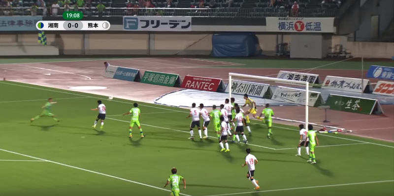 0-0で迎えた20分、コーナーキックを獲得した湘南。