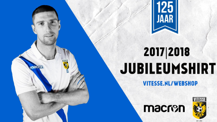 フィテッセの創設125年記念モデル。黒と黄色のホームユニには惹かれなかったが、白のポロネックに青のタスキのアウェイユニは目を引く(白と青はフィテッセの本拠地アーネム市旗の色)。