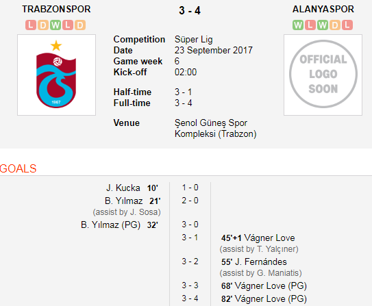 GOOOLLL | 45’ Vagner Love #Trabzonspor 3-1 #Alanyaspor pic.twitter.com/GPnVHJbAM6