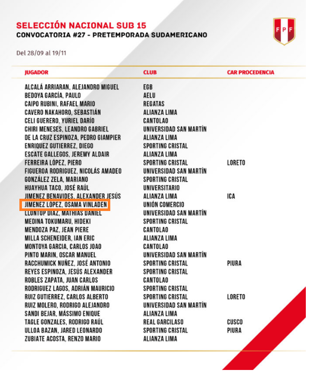 ウニオン・コメルシオに所属する選手の名前が、オサマ・ビンラディン(Vinladen)・ヒメネス・ロペス…。