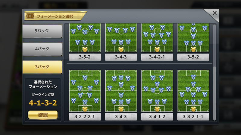 『モバサカC』では、これでもかというほどフォーメーションが用意されている。