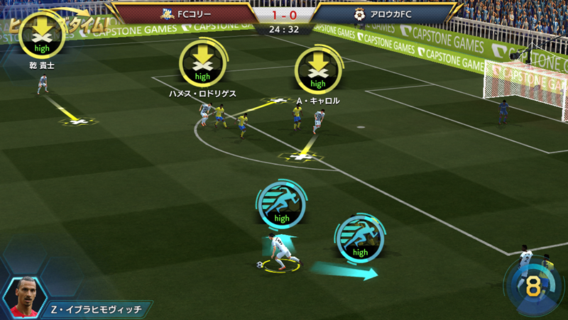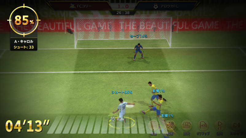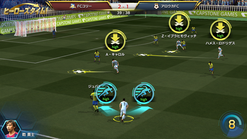『モバサカC』の売りの一つに、プレイヤー自身が局面でパス・ドリブル・シュートなどを選択できる「ヒーローズタイム」がある。