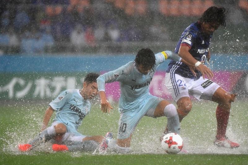 各地で悪天候の中Jリーグの試合が行われたのだが、ジュビロ磐田対横浜F・マリノス戦が行われた静岡スタジアム・エコパのピッチ状態は特に酷いものだった。