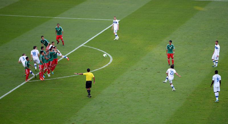 27分にピルロはマリオ・バロテッリが奪ったフリーキックを蹴り、ギジェルモ・オチョアが守るゴールを破った。